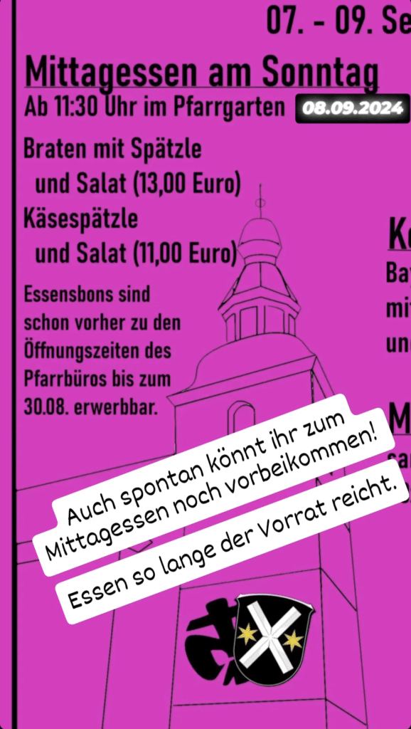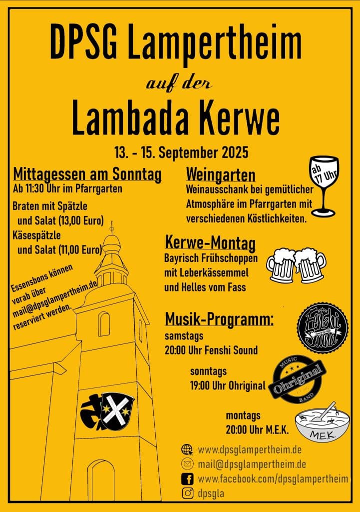 Bald ist es wieder soweit! Vom 13. – 15. September könnt Ihr uns an unserem Stand in der Römerstraße gegenüber der St. Andreas-Kirche auf der Kerwe antreffen. Alle Informationen zu unserem Stand findet Ihr auf unserem neuen Kerwe-Flyer: