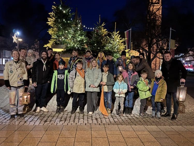 Einen Tag später fand die Tradition ihre Fortsetzung im Lampertheimer Rathaus. Die jüngsten Mitglieder des Stammes, die Wölflinge, überreichten das Friedenslicht offiziell als Vertreter aller Lampertheimer an Bürgermeister Alexander Scholl. Der Bürgermeister nahm das Licht dankend entgegen und betonte die Bedeutung dieses Symbols für die gesamte Stadtgemeinschaft: „Das Friedenslicht erinnert uns in der oft hektischen Vorweihnachtszeit an die zentralen Werte unseres Zusammenlebens: Frieden, Gemeinschaft und Nächstenliebe. Ich danke den Pfadfindern für ihren unermüdlichen Einsatz, diese wichtige Botschaft zu uns zu bringen.“ Das Friedenslicht wird nun bis Heiligabend an vielen Orten in Lampertheim leuchten und die Menschen auf die Weihnachtszeit einstimmen.
